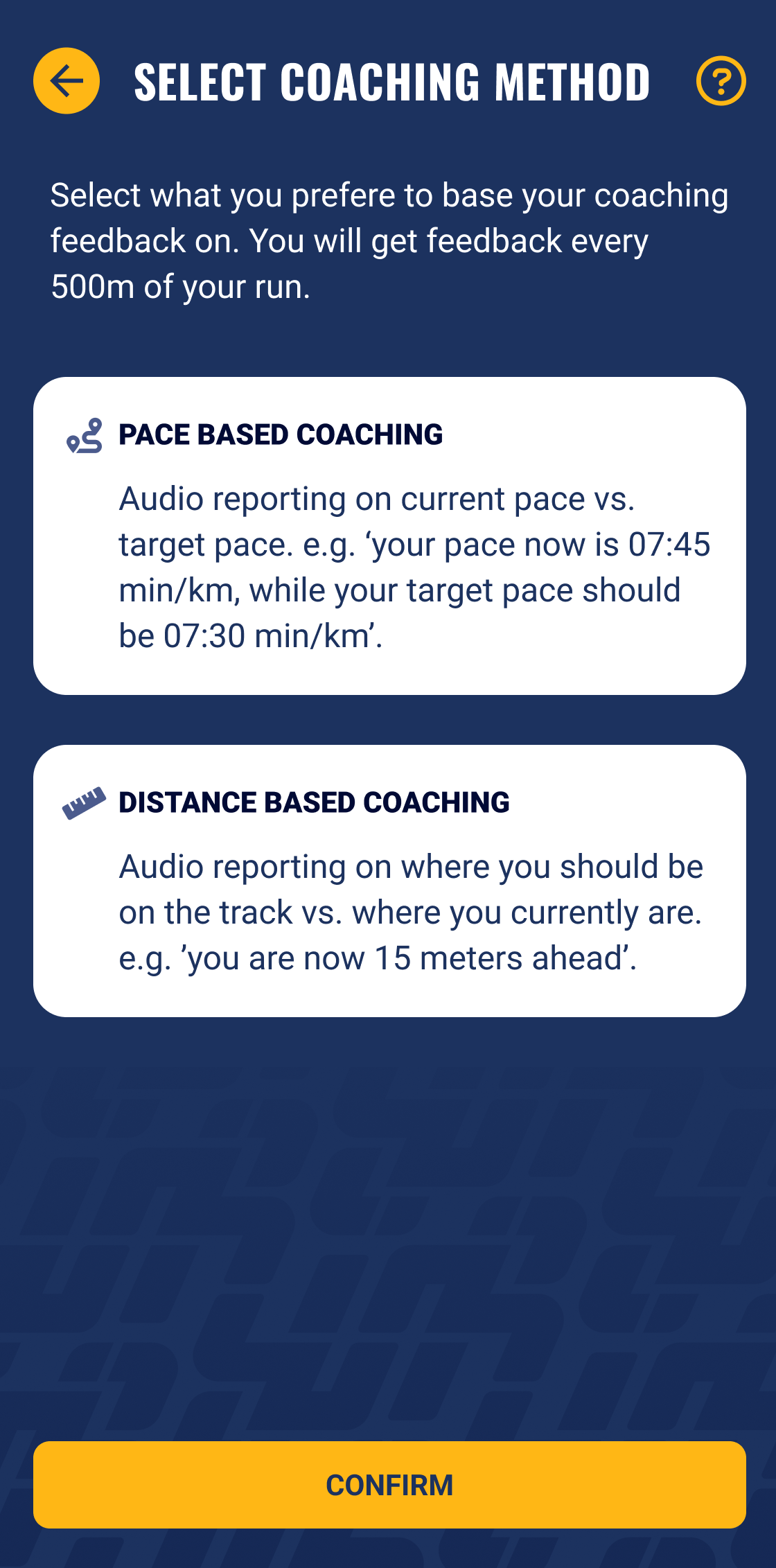 Personalize your coaching feedback to your liking. Whether it is pace based or distance based, Racemate will help you perform your ultimate best.