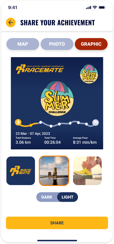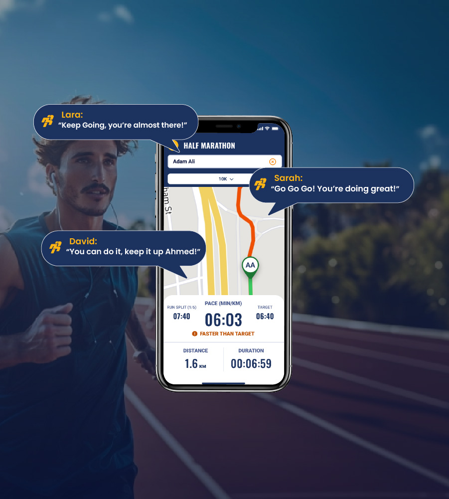 Receive live cheers and motivational messages from loved ones to boost your morale while you are running the race. Share your results and experience with your friends and family and let them know your achievements.